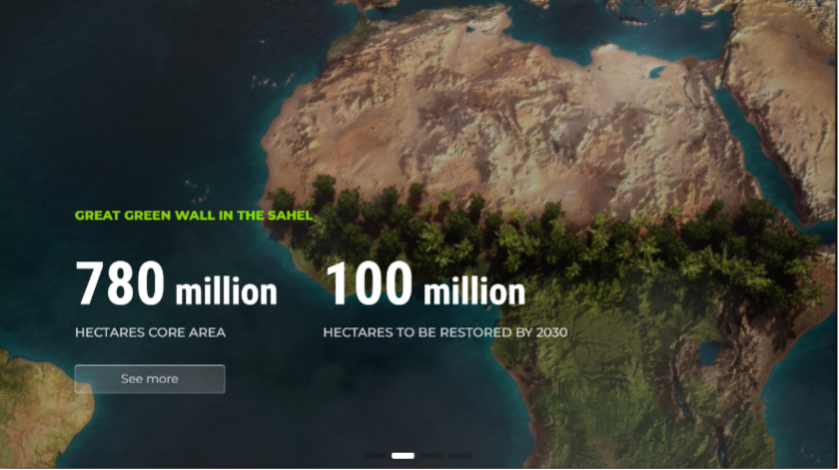 But despite the blatant lack of tangible results, GGW continues to be championed by the international community - discursively, materially and financially - and even if its narrative has slightly shifted from reforestation to a more general “soil restoration”, the websites of the GGW still feature dystopian renderings of reforestation (Fig. 2). More concretely, the GGW is discussed at major international meetings as if it existed, and the institutions that promote it continue to function. Probably the most significant effect of this ‘phantom-like’ wall concerns the debate on climate change and the diversion of attention from urgent reduction of fossil fuel consumption to “phantom” CO2 compensation results through reforestation.